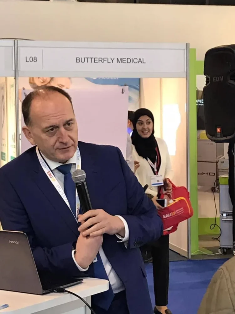 Currently, at the request of one of the main sponsors of the congress, which produces minimally invasive stone-disintegration equipment, Professor Guram Qarazanashvili, as an international expert, presented to European urologists the modern technologies for disintegration of kidney and ureteral stones produced by a leading Chinese company, such as single-use digital ureterorenoscopes and a laser.